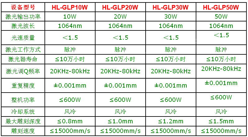 光纤激光打标机技术参数: