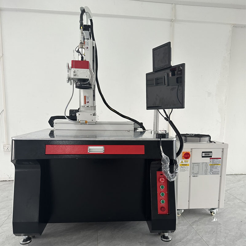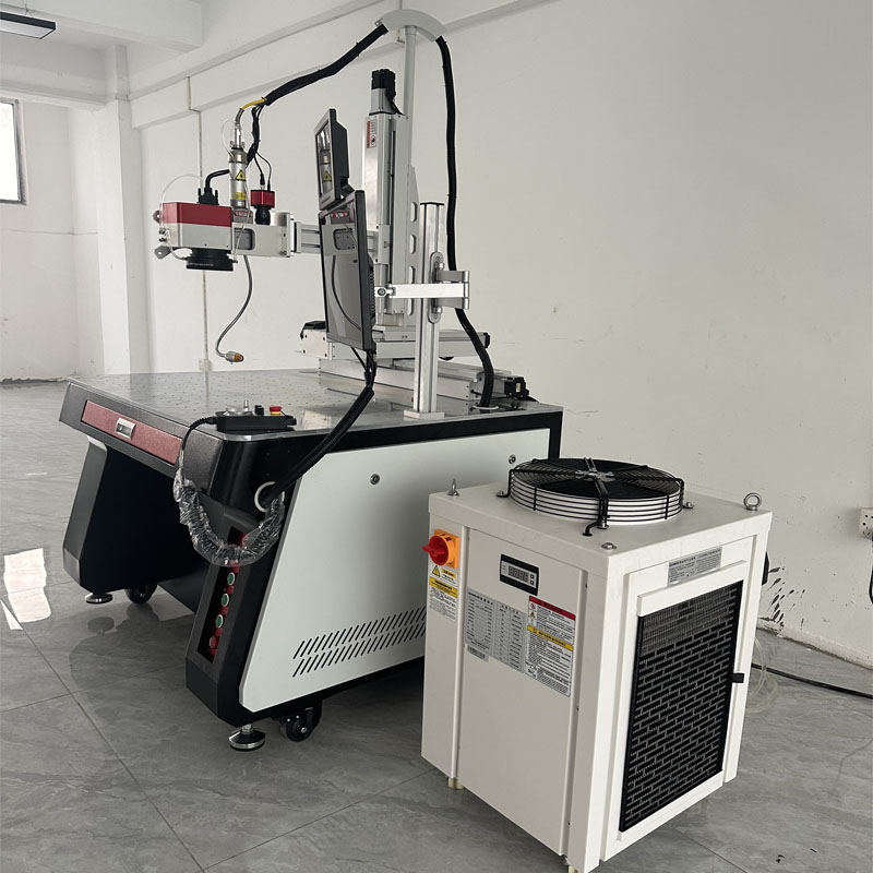 激光器的激光由光纤线传输到手持焊枪后聚焦到焊物表面,被 承载物吸收后转化为热能使材料熔化或焊丝熔化达到熔融的效果,通过辅助惰性气体保护形成优质焊道,从而使两个物件牢固的焊在一起。冷水机水流向激光器与手持焊接头进行温度降温恒温,从而起到保护重要部件作用。